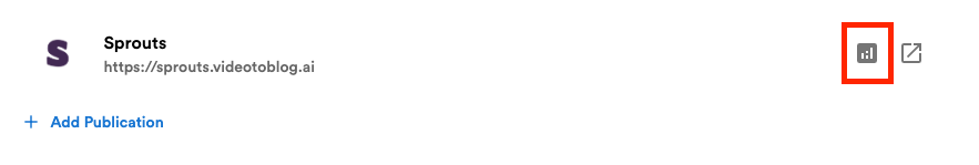 To view your publication's analytics simply click on the chart icon next to your publication as shown below.